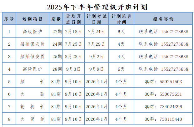 2、参训管理级培训的学员请于开班前一周在海事局系统完成解职报备并进行确认,并将服务簿上资历在中国海事综合服务平台上进行维护,否则不得参加本次培训,具体要求见QQ群里班主任老师的通知。