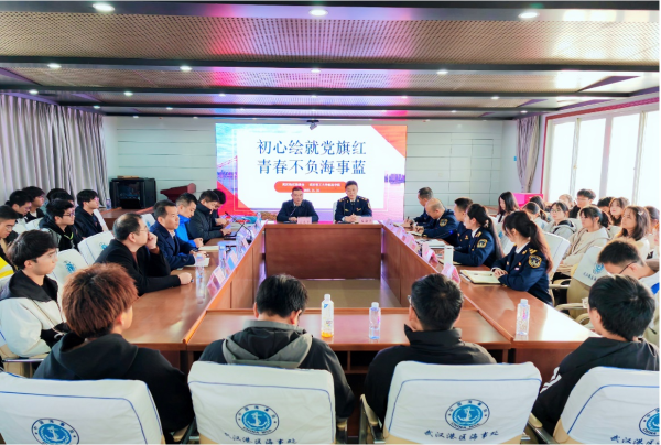 2023年11月16日下午,新葡的京集团350vip海事管理系师生赴武汉海事局港区海事处开展联学共建活动,推进海事管理专业建设与行业需求深度融合,探索高质量党建引领一流专业建设新模式。在海事管理系主任翁建军教授带领下,刘奕、张帆、谭志荣、袁智、谢澄等老师与海事管理专业2023级56名本科生共同参与了活动。本次活动得到武汉海事局的大力支持,政委王海青、副处长孙玉国、大队长曾恺等党员代表、校友参加共建交流活动。