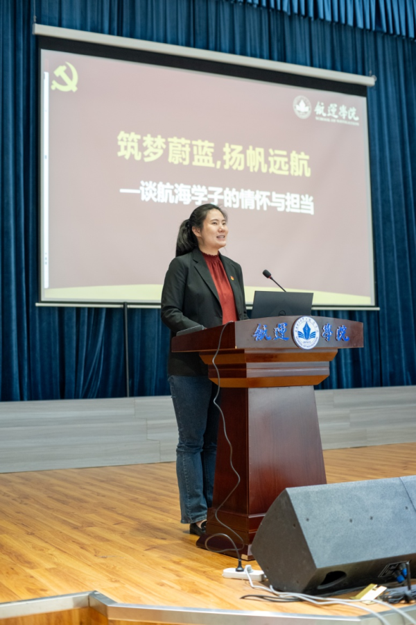 为建立师生沟通桥梁,进一步强化航海学子的行业认知和担当,丰富航海文化传播途径,2024年4月11日,航海技术系党支部与研究生第二党支部联合学院团委、天象馆科普教育基地在天象馆一楼会议室开展了“深耕学堂 筑梦蔚蓝”的主题党日活动。活动邀请杨星教授作题为《筑梦蔚蓝,扬帆远航——谈航海学子的情怀与担当》的报告,航海系党支部和研究生第二党支部全体党员、航海技术专业本科生参加活动,航海技术系党支部宣传委员周阳老师主持活动,学院党委书记赵娟娟到会并讲话。