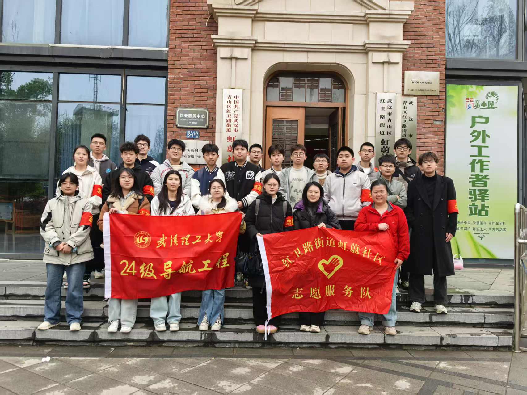 活动结束后,志愿者们在社区服务中心门口合影留念。这次活动不仅为社区提供了实实在在的帮助,也让志愿者们更加深刻地理解了志愿服务的意义。未来,导航工程2402班将继续开展更多类似的志愿服务活动,为社会贡献更多力量。