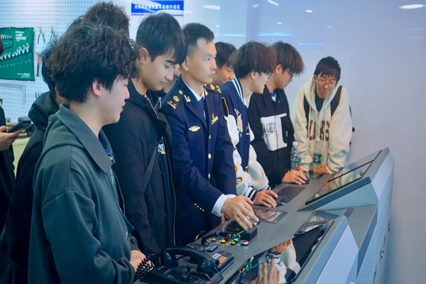 在“智慧海事”展区,海事工作者在电子沙盘动态模拟船舶通航场景,在防污染实验室演示油污应急处置技术,同学们直观地感受到了科技赋能下的海事管理现代化进程。