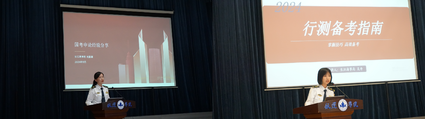 本次宣讲会邀请了2位2024年考取海事局的“国考达人”从备考经验、答题技巧等方面分别分享了行测和申论的“高分秘籍”。