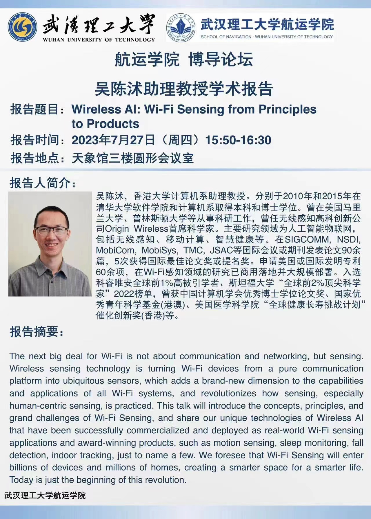【博导论坛】Wireless AI: Wi-Fi Sensing from Principles to Products