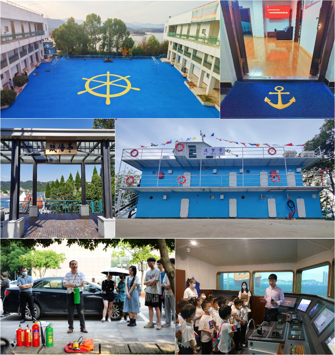 近年来,实验中心持续打造特色育人阵地。在木兰教学实践基地建成航海文化广场,以“践悟亭”为核心营造沉浸式学习空间;为“逐梦号”消防舱定制专属船铭牌,将船舶文化融入实践教学;在实验室铺设航海主题地垫、悬挂国际信号旗,让专业元素融入日常学习场景。此外,中心老师深度参与学院文化建设,协助打造“余区海上丝绸之路文化长廊”,牵头申报获批大学生劳动教育特色实践基地及学校文化建设项目,在第二届校史文化大赛中获一等奖,并积极参与院史编撰、院史馆筹建等工作,以实际行动传承航运文化。