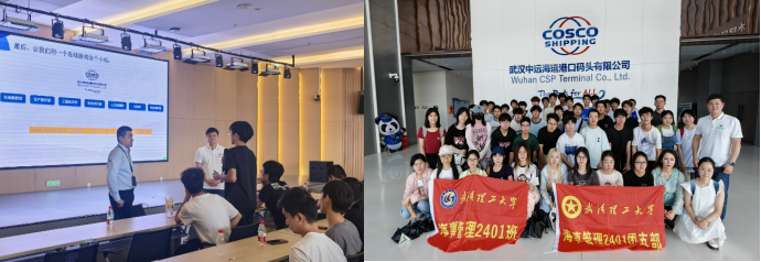 6月5日,海事管理系组织2024级学生前往武汉中远海运港口码头有限公司,开展了一场人工智能与虚拟现实交互的沉浸式专业认知实习。