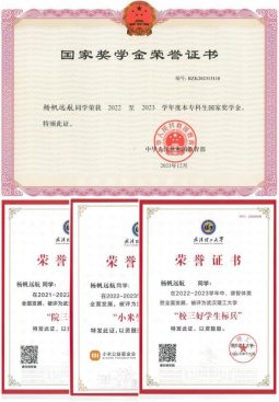 杨帆远航同学始终秉持“青衿之志,当履践致远”的学习态度,用心感悟每一门课程的精髓,用实践检验每一个知识点的奥秘,在课余时间不断充实、提高自己。尽管在大学一年级的学习过程中,杨帆远航同学尚未完全掌握适合自己的学习方法和节奏,成绩也只是处于专业中上游水平,但他积极主动地调整学习策略,与宿舍舍友们相互学习,共同专研。大二学年,宿舍成员均成绩优异,杨帆远航成绩位列专业排名第一,获国家奖学金,宿舍成员荣获学校奖学金。
