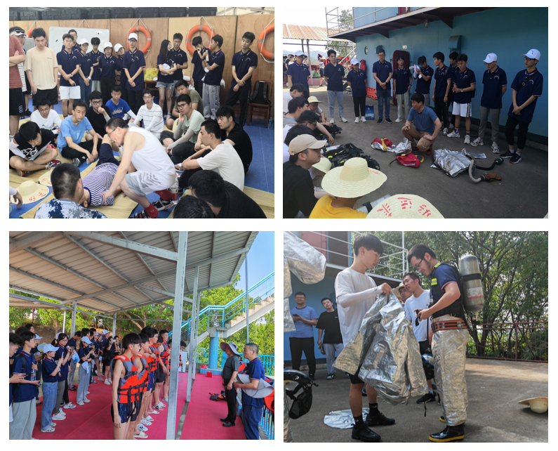 下午,在翁建军教授和学院带队老师的带领下,同学们来到学校木兰水上教学基地,观摩和学习水上应急演练,了解了包括防火与灭火、海上求生、基本急救、个人安全与社会责任等部分的实操和理论知识。在观摩学习中,同学们学习了急救的相关知识、求生艇筏的使用方法、个人求生的必备技能、消防工具的操作原理等,翁建军老师在活动结束前勉励同学们,本次的科普活动希望仅仅是开始,希望未来同学们可以将本次所学所看应用于未来的工作研究和学习生活。